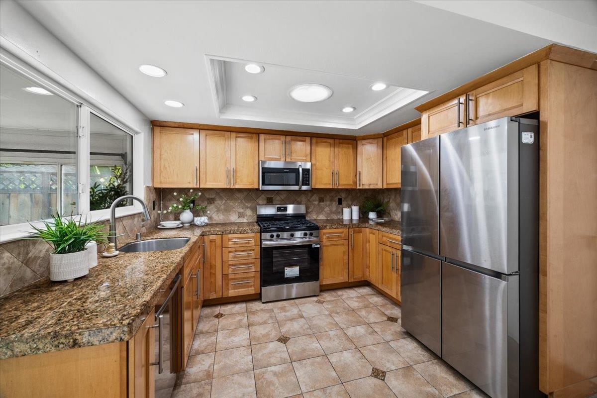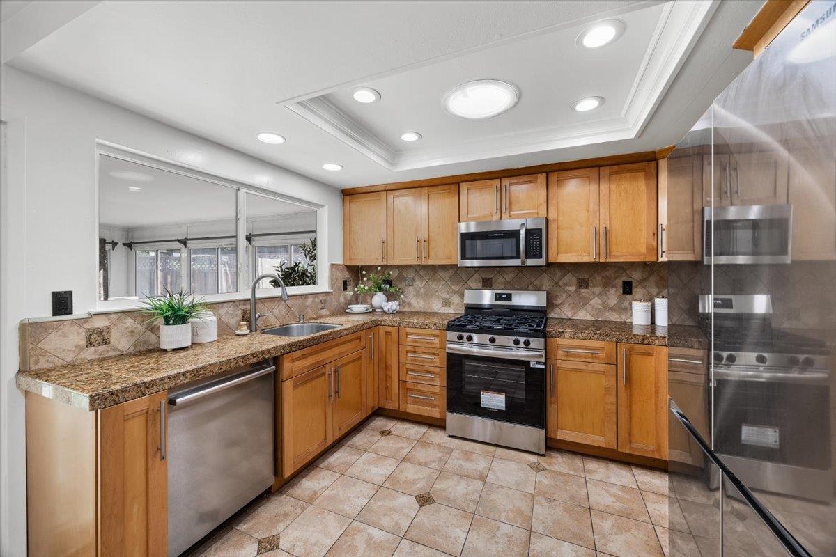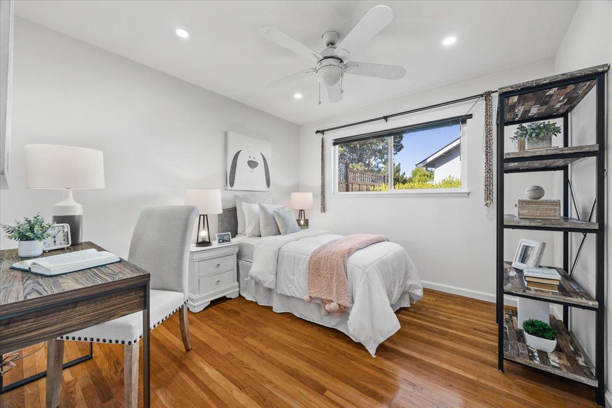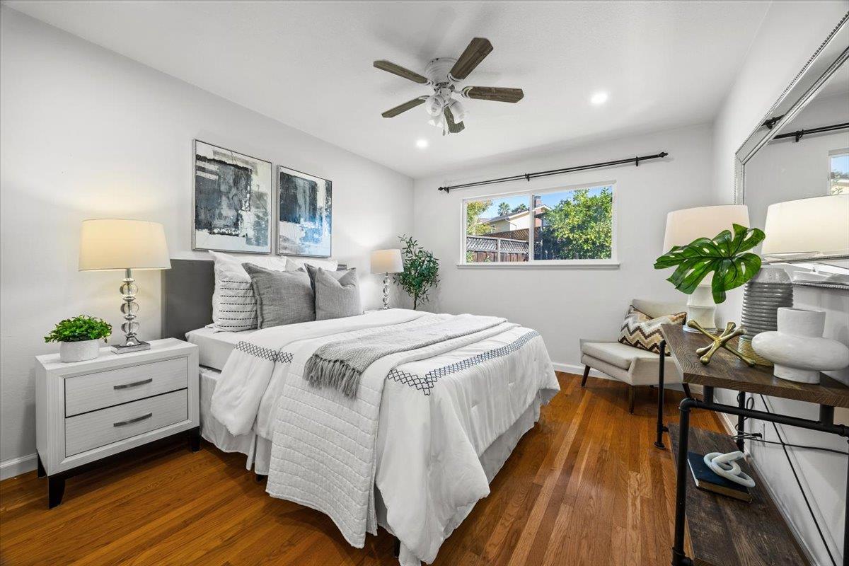 Welcome to this beautifully maintained single-level home with commanding curb appeal near the coveted Piedmont Hills neighborhood. Elevated above the street, the residence features a pavered driveway and porch, plus an extra-wide paver walkway to the side yard. Inside, 3 beds/2 baths and approx. 1,553 sqft showcase a step-down living room with soaring ceilings and a classic fireplace, an updated kitchen with soft-close drawers and abundant outlets, a sunny breakfast nook, and a versatile sunroom that expands everyday living. The primary suite includes generous closet space and a custom built-in storage wall. Set on a 6,100 sq ft lot, the backyard is newly landscaped with a spacious patio and covered area perfect for entertaining. Directly across the street is a family park; top-rated schools, plus easy access to 680/880/BART, shopping, and dining place convenience at your doorstep. Recent upgrades include: new recessed lighting, fresh interior paint, a new bedroom window, a newer roof, whole-house copper repipe, and recent sewer line & property-line clean-out replacement, delivering move-in confidence. This is the ideal blend of location, lifestyle, and thoughtful updates. Schedule your private tour today.