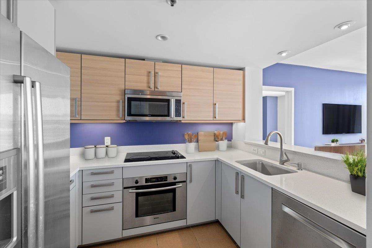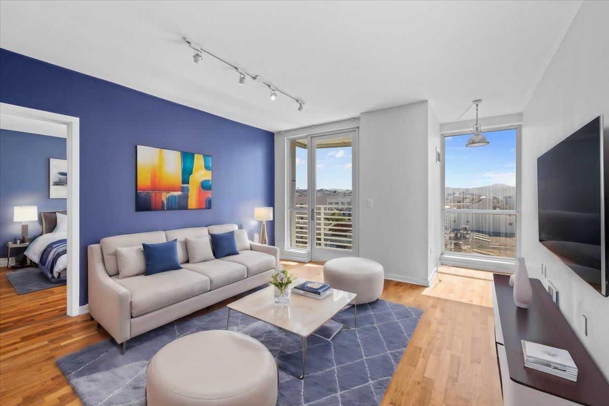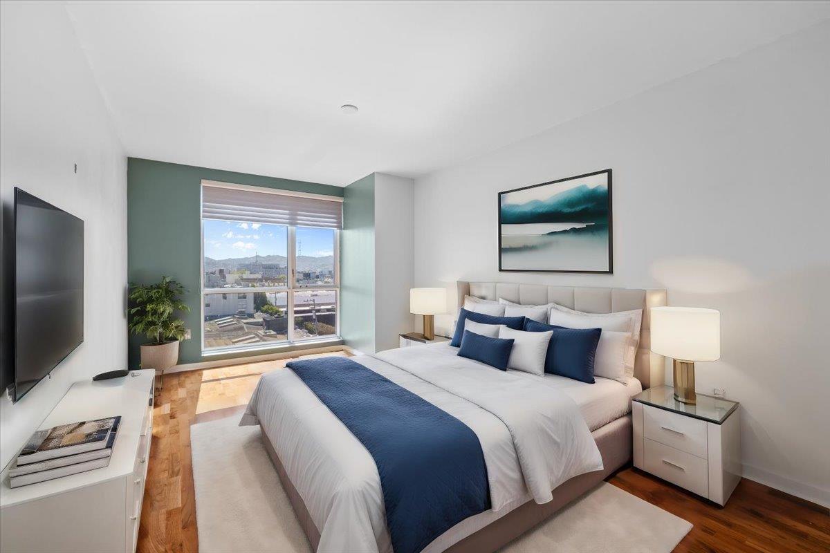 Welcome to 555 4th St #723, a bright and spacious 2-bedroom home at the Palms in the heart of San Francisco. This fantastic floor plan features split bedrooms and 2 full baths, with one en-suite for added convenience. The sizable primary bedroom provides ample space for a king-size bed, seating area, and dressers. The kitchen and both bathrooms feature elegant cabinetry, complemented by quartz counters and top-of-the-line appliances. Expansive windows in each room flood the space with natural light while the balcony allows for amazing indoor-outdoor living. This wonderful city home is not to be missed! The Palms building offers a host of amenities, including a 24-hour lobby attendant, concierge services, fitness center, business center, theater, club lounge, and outdoor courtyard. Residents will also enjoy the convenience of one-car deeded parking in the garage, with a remarkable walk score and easy access to Whole Foods, dozens of restaurants, as well as Muni & Caltrain stations. This location is truly unbeatable. Don't miss the opportunity to experience the best of city living at 555 4th St #723. Schedule a showing today and make this your new home sweet home!