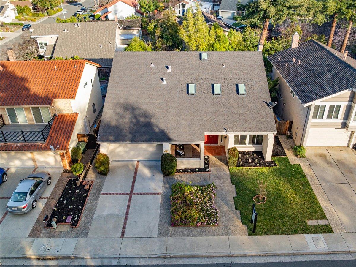 AMAZING! Set on a spacious lot in one of Cupertino's most prestigious neighborhoods & served by award-winning schools Lincoln, Kennedy, & Monta Vista, this beautifully updated 5-bedroom, 3-bath residence sits on a prime cul-de-sac. Directly across from a scenic trail w/ no home facing the front, the property offers privacy & a peaceful natural setting w/ exceptional separation from neighboring homes. A front courtyard creates seamless indoor-outdoor space for entertaining or relaxation. Inside, soaring ceilings, skylights & natural light enhance the open floor plan, complemented by fresh interior paint & updated flooring throughout. A ground-floor bedroom & full bath provide flexibility for guests, multigenerational living, or office use. The kitchen w/ granite countertops opens to the family room w/ clear sight lines across the main living areas, ideal for everyday living & gatherings. Upstairs, a landing overlooks the formal living & dining rooms. Four additional bedrooms feature recessed lighting & comfortable proportions. The primary suite offers vaulted ceilings, dual closets walk-in closets, & an updated en-suite bath w/ modern finishes. Landscaped yard spaces & an updated garage complete this well-maintained home in one of the most sought-after neighborhoods. MUST SEE!